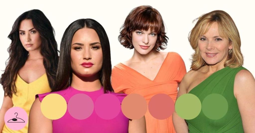 Famous Bright Spring celebrity examples, such as Demi Lovato, Emily Rossum, and Heather Graham, typically have a neutral-warm undertone with skin carrying a warm golden or peachy glow. Their eyes sparkle with turquoise-blue, bright green, or light hazel hues.