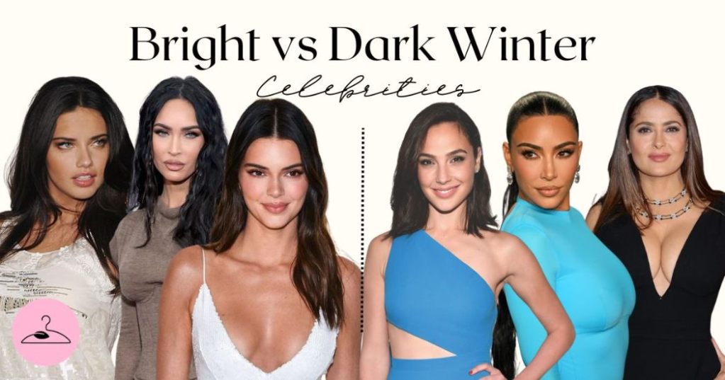 Dark Winter celebrities such as Kim Kardashian, Gal Gadot, and Selma Hayek shine in rich jewel tones like burgundy, pine green, and black. They possess deeper, more blended features, which makes them look striking in saturated, intense colors that mirror their natural depth.