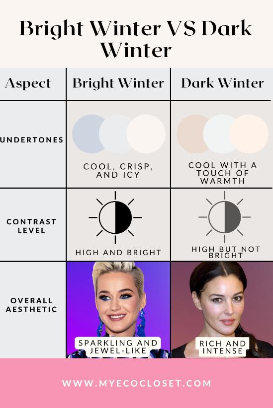| Attribute | Bright Winter | Dark (Deep) Winter |