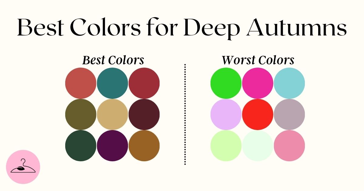Deep Autumns should avoid pastels, icy or cool tones (like bright white and icy blues), bright spring hues, and muted shades, as these colors may clash with their warm undertones or dull their vibrant features.