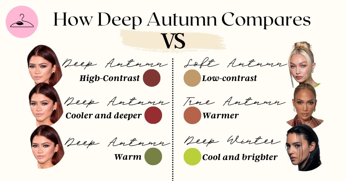 Overlap: Both seasons have warm undertones, but Deep Autumn has more intensity, while Soft Autumn is gentler and more muted.