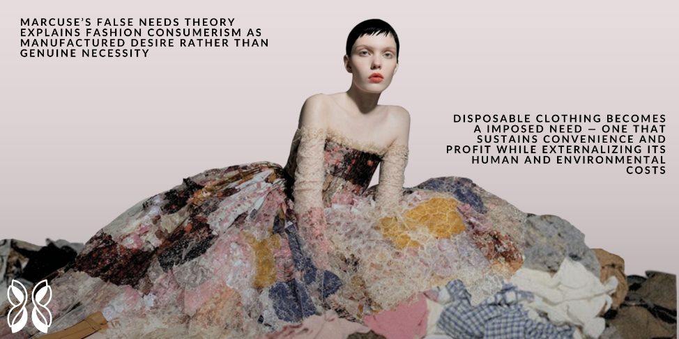 Philosopher Herbert Marcuse argued that corporations don’t just sell products. Rather, they manufacture desire itself, imposing “false needs” that serve profit over human or collective wellbeing. Disposable clothing is perhaps his theory’s most literal proof.