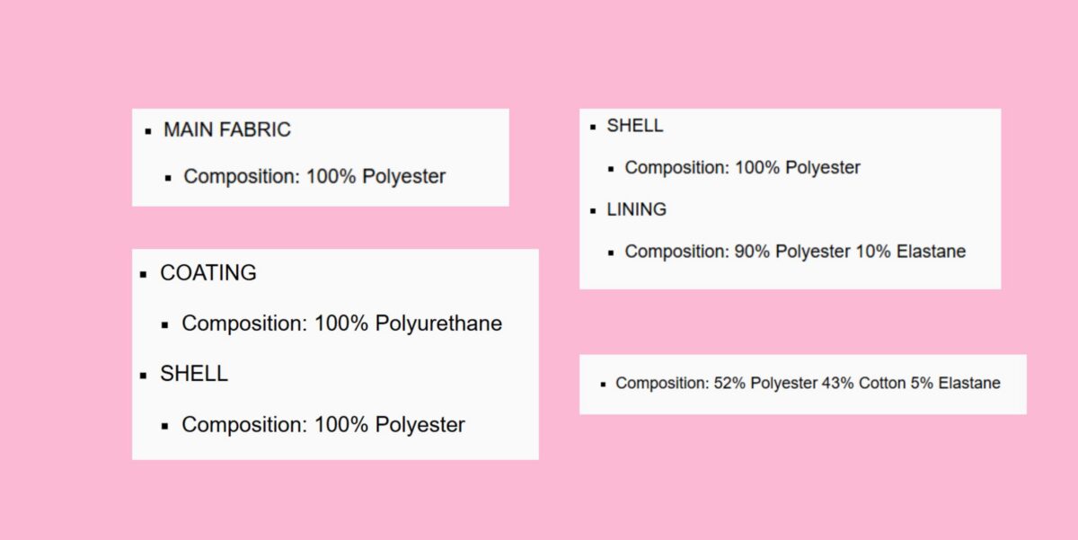Like Shein, Cider relies on low-cost synthetics such as polyester and acrylic to keep prices low and colors bright. These fibers are inexpensive to produce but come with drawbacks: they shed microplastics in the wash, trap odor, and often arrive with chemical residues from dyes or finishing treatments. The strong “factory” scent many shoppers notice is a sign of these leftover agents.