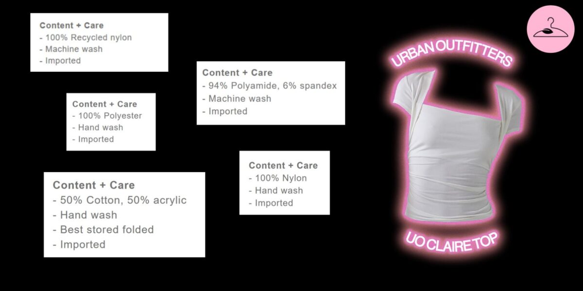 In other words, UO spotlights its “responsible fibers” while keeping the biggest questions unanswered. Meanwhile, the brand continues to rely heavily on popular synthetic fabrics, such as acrylic, polyester, nylon, the usual fast fashion trio that simply don’t fit into a circular system. These materials are cheap, non-biodegradable, and nearly impossible to recycle, meaning they directly contradict the brand’s narrative of sustainability.