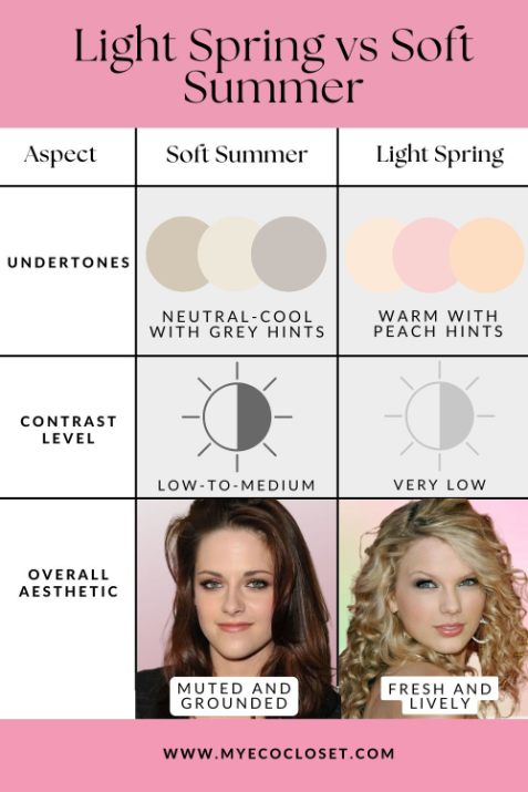 - Chroma: Light Spring is clear; Soft Summer is muted.