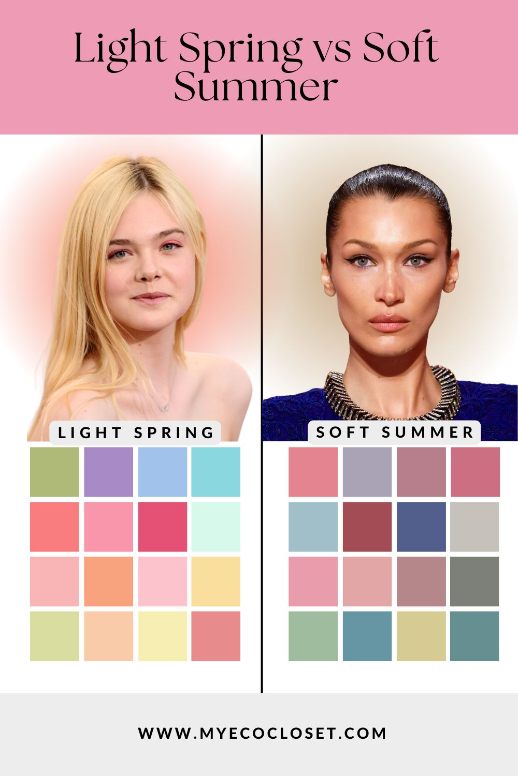 These comparisons highlight the key difference: Light Springs radiate in fresh warmth, while Soft Summers glow in muted elegance.