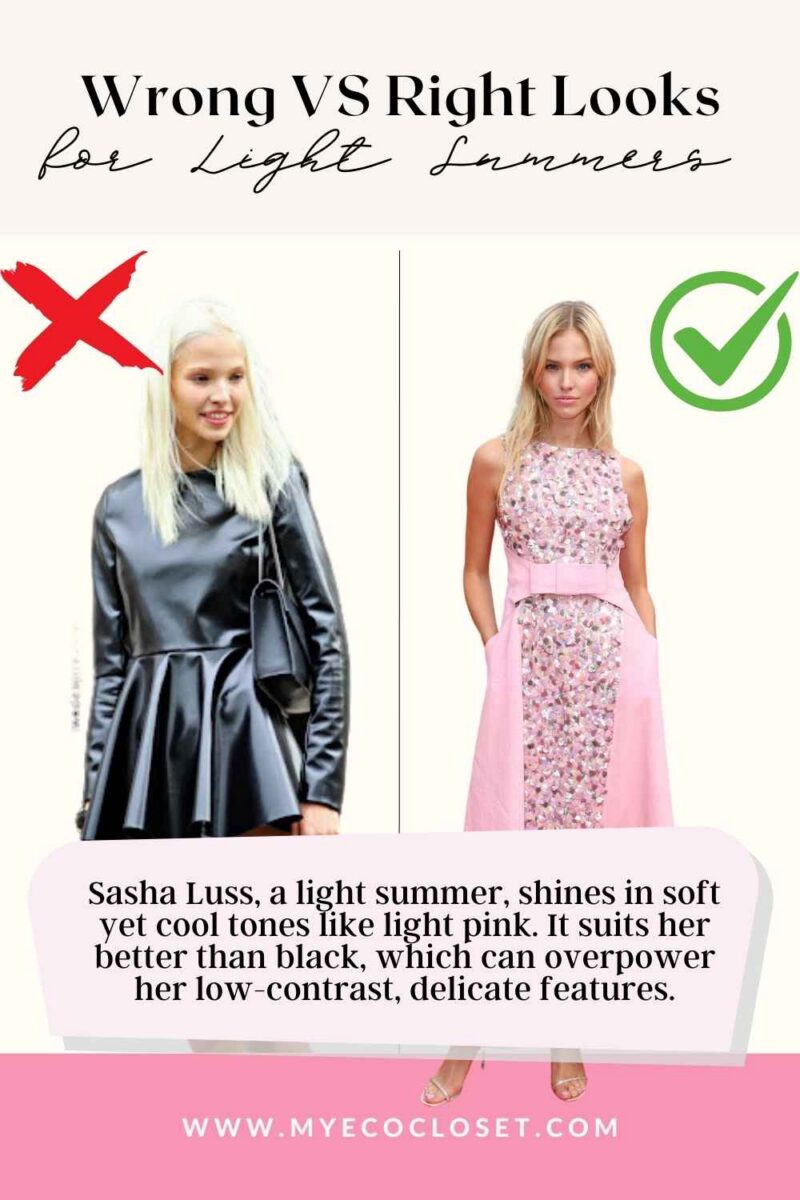 The key? Light Summers should embrace airy, muted pastels and icy tones that enhance their softness. Most importantly, they should stay away from harsh contrasts and overly warm shades, letting their beauty take center stage.