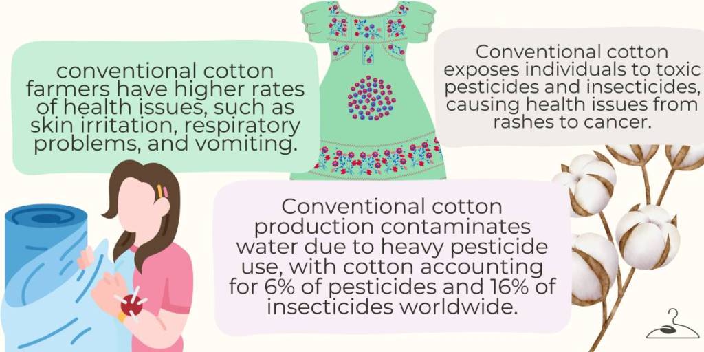 Unfortunately, garments made of conventional cotton aren’t always healthy, as they’re sprayed with toxins throughout production. In fact, conventional cotton represents one of the world’s most chemical-laden crops.