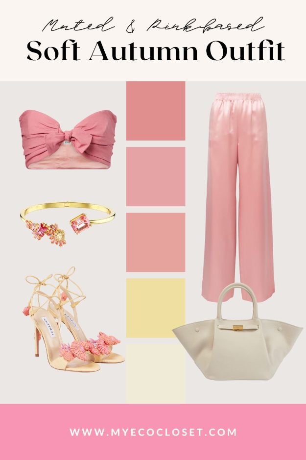 The best Soft Autumn pinks lean warm and natural: think salmon, rose, or terracotta pink. A muted pink dress with antique gold jewelry creates a balanced, romantic effect, while bright bubblegum or neon pinks disrupt your natural harmony.