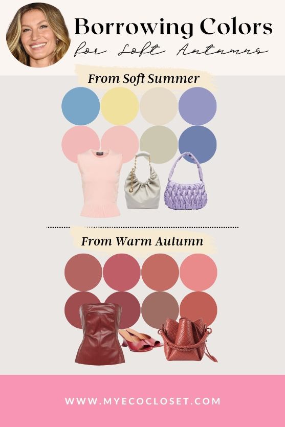 Some of Soft Summer’s muted shades, especially the softer berries, mauves, and misty greens, can blend well with Soft Autumn’s palette as well. The key is to choose colors that lean slightly warm or neutral. If a color feels too cool, like icy lavender or powder blue, it will clash.