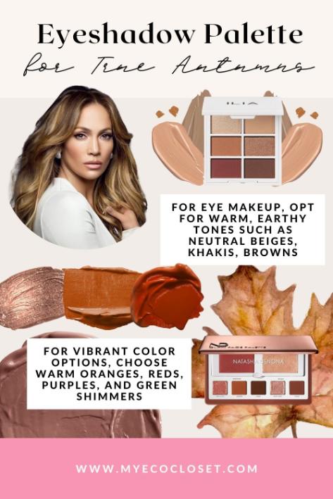 When it comes to finishes, matte and soft shimmers work best. Avoid overly glittery or cool-toned (blue-based) eyeshadows, as they can clash with True Autumn’s naturally warm palette. Stick to earthy, glowing tones, and your eye makeup will always feel effortlessly natural.