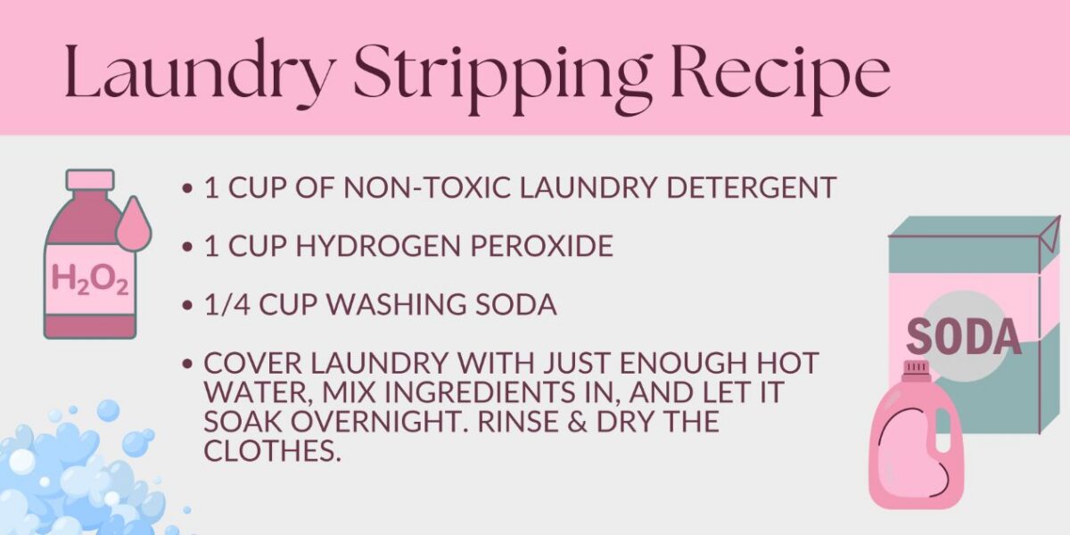 First and foremost, protect yourself — as you wash toxins out of clothes with the laundry stripping process, always wear gloves. This keeps harsh chemicals off your skin. Secondly, avoid treating delicate fabrics such as Tencel or silk, which are prone to shrinking and fading, with this method. Laundry stripping isn’t suited for those materials, as they can shrink or fade.